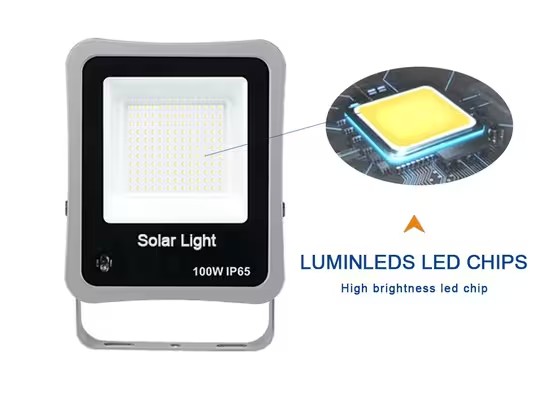√ 170lm/W SUPER BRIGHT - 100W high lumens solar flood light supports up to 350 square meters lighting, like 4 to 5 units light up a basketball playground, 11 units light up a half football field.